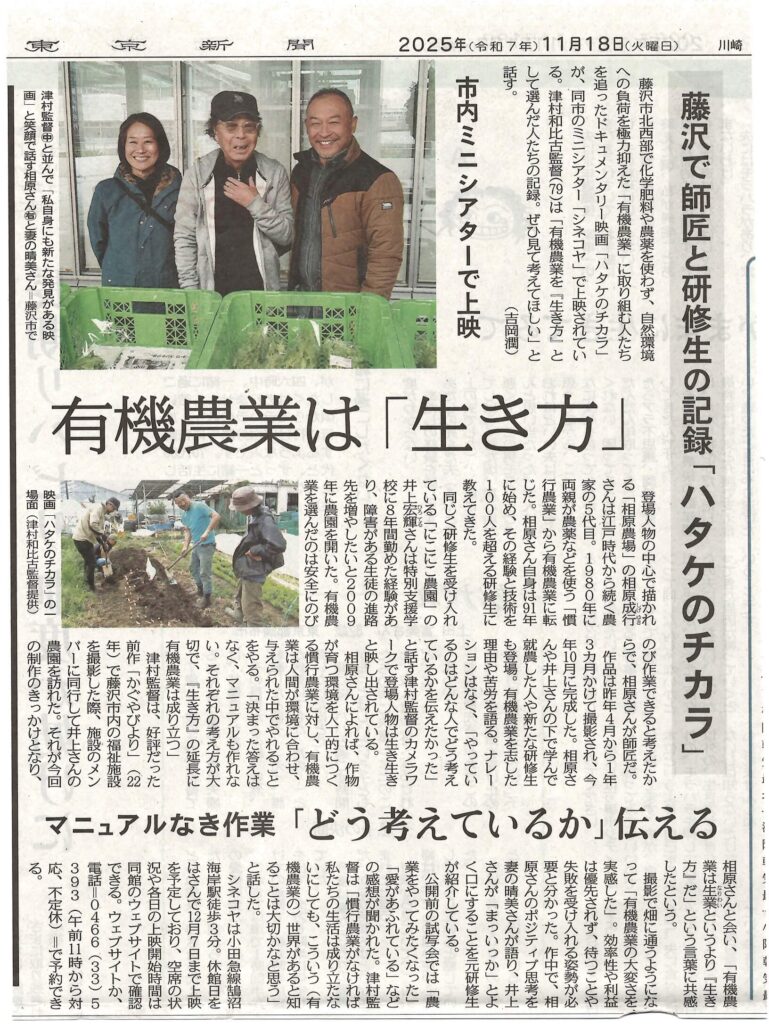 2025年11月18日火曜日、東京新聞の川崎版に「ハタケのチカラ」の概要と取り組みの詳細を取材掲載して頂きました。